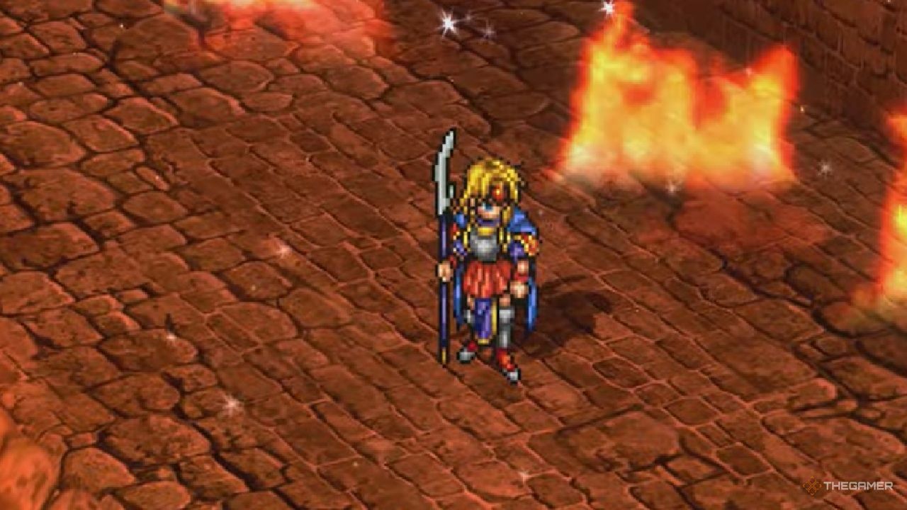 虽然它的开始与任何 SNES 时代的日式角色扮演游戏一样,但《Suikoden》很快就推出了一个游戏循环,展示了它对 PS1 硬件的使用。这款早期的 PS1 JRPG 有着舒适的地下城探索、Boss 战、军队战斗和一对一决斗的节奏。