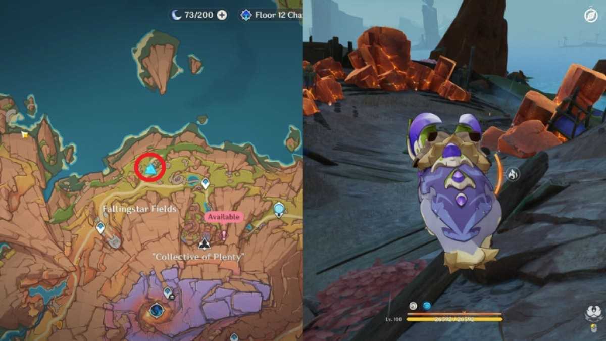 使用流星平原西南方向的路径点向北行驶,在温泉附近的一个小火山口周围找到三个地热喷口。留住塔坦卡龙并使用其普通攻击关闭所有通风口。如果你找不到塔坦卡龙,你也可以使用突入攻击来关闭它。一旦完成,炉壳山黄鼠狼就会生成,你必须击败它。这将为您提供一个精致宝箱,价值 5 个原始宝石。