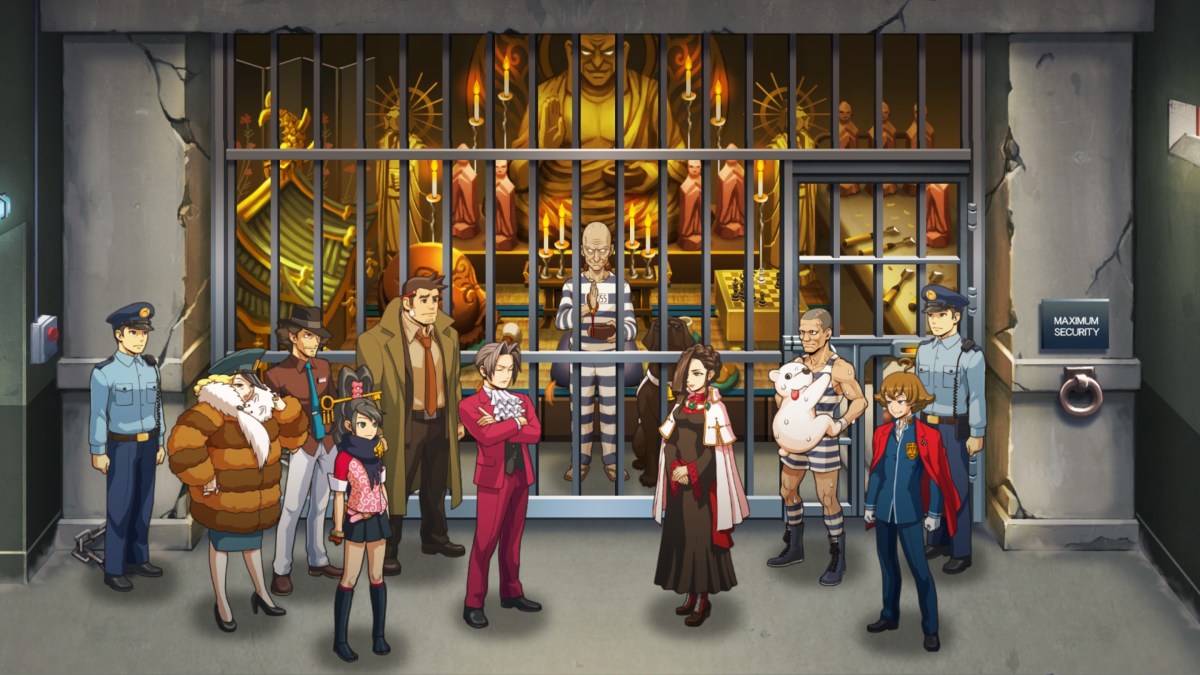 但游戏的叙事在很大程度上排在系列中流砥柱和新人的轮流演员阵容之后。归根结底,游戏大多是由角色驱动的,你对叙事享受的里程可能取决于你对游戏中古怪角色的感受。 《逆转裁判调查合集》可能由伪视觉小说组成,但其中的古怪之处,从穿着盛装的蓝獾吉祥物绑架者到动物园般的监狱中扔假发的囚犯,才是这里真正的卖点。