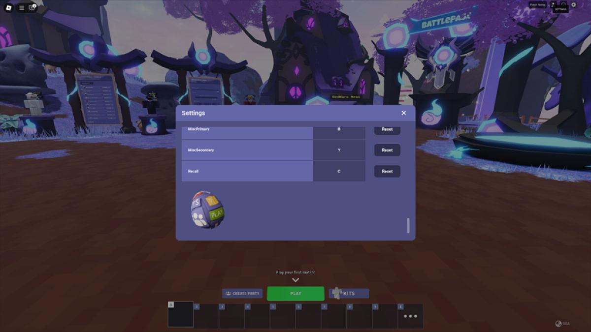- 单击设置右上角的菜单(齿轮)。前往按键绑定然后向下滚动,您将在其中找到第一个 UI Egg(请参阅上面幻灯片中的第一张图片)。点击鸡蛋来收集它。