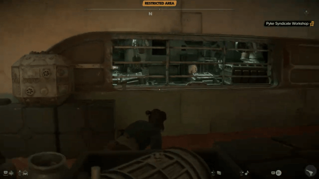 当你到达位于幻影地区托沙拉的派克辛迪加工坊位置后,前往建筑物北侧的入口。您将在这里开始寻找派克辛迪加的全部三件宝藏。请通过以下方式进入使用 Nyx 按住门控在门的右边。这将带您进入建筑物内。