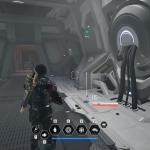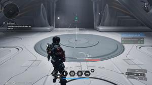 继续前进,直到进入一个巨大的开放房间,里面有移动平台和屏蔽舱。在边缘,还有另一张记录可供您收集。