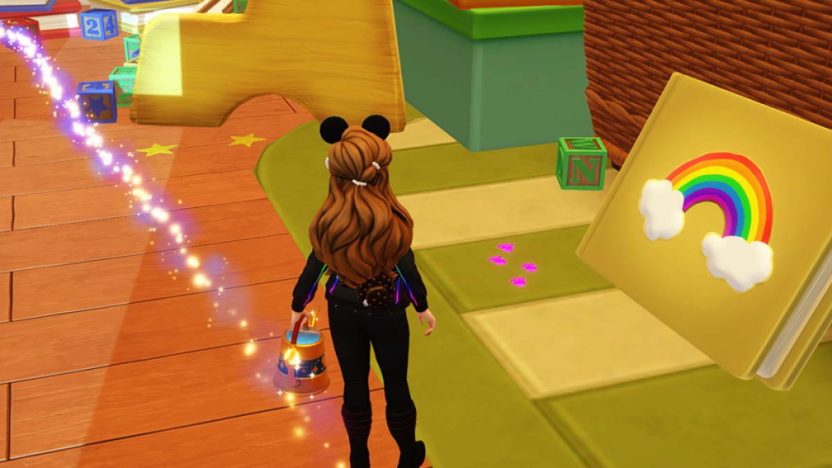 您的下一个目的地是玩具总动员王国。在这里,您会发现地板上散落着粉红色的爪印。在这些地方使用喷壶不会给你带来任何记忆,但它会提高你清洁房间的责任。
