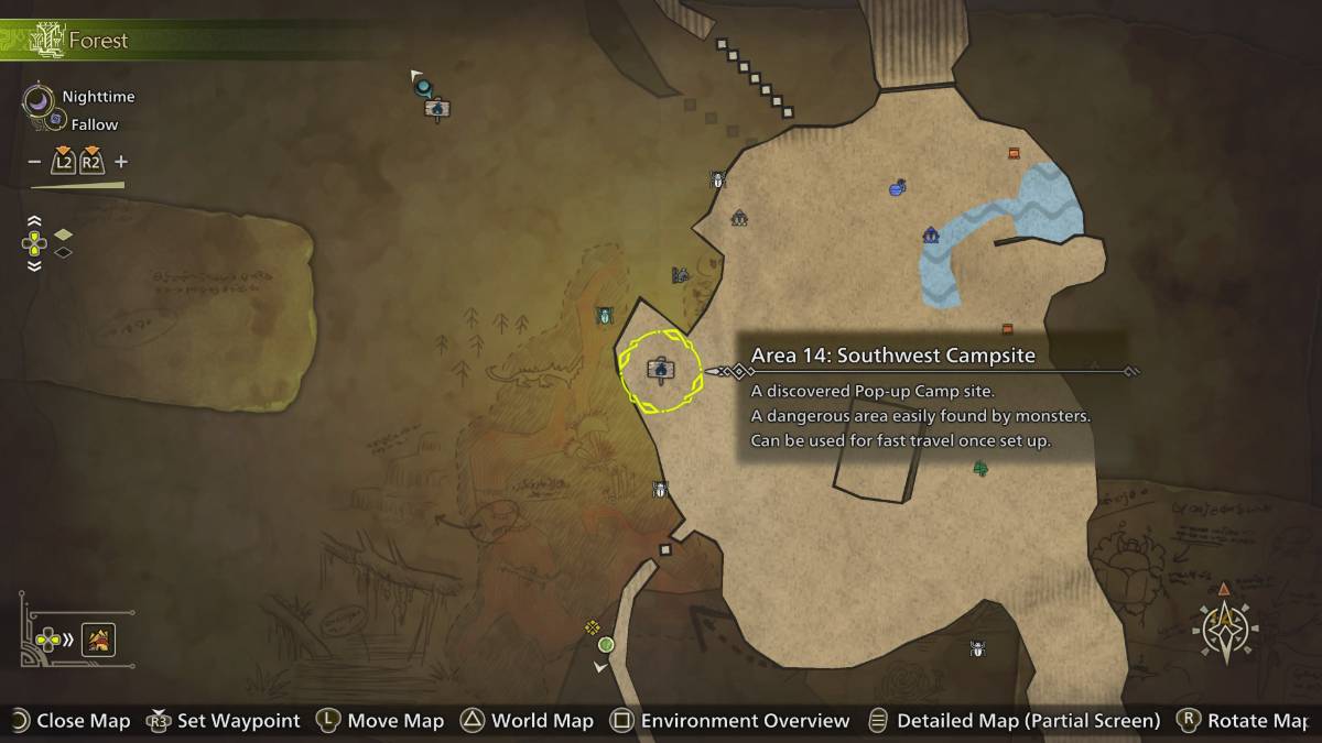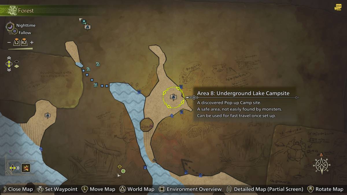 《怪物猎人荒野》中每个较低的森林临时营地位置