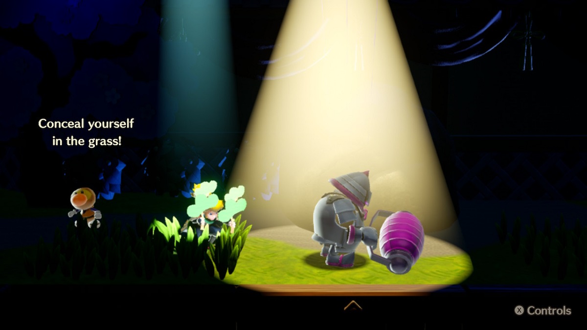 当你到达你首先躲藏在高草丛中的区域时,草丛旁边有一个守卫,聚光灯照在他身上。当守卫背对着你时击败他,并拾取一颗闪光宝石作为奖励。