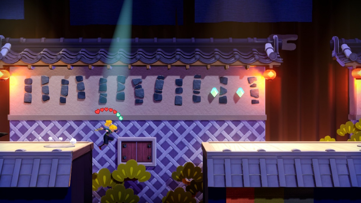 在你到达之前你就发现了它。它位于其中一堵墙的顶部。当你遇到两个敌人时,一个在墙上,另一个在地上,先打败地上的敌人。然后,使用灯笼爬上墙壁并击败敌人。然后,向左走到墙上,抓住你之前看到的闪闪发光的宝石。
