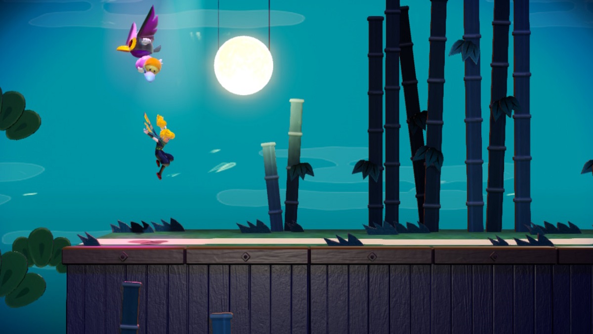 在这里,你会发现一些鸟儿飞向舞台左侧。一只鸟携带着 Theet,所以你需要跳跃并击败这只特殊的鸟。作为奖励,您将获得另一颗闪光宝石。