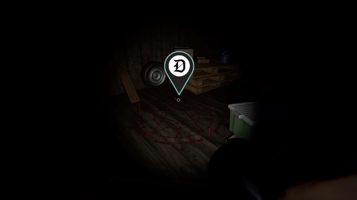 在楼梯顶部,再次右转,穿过门进入楼上的卧室。径直走到后墙,然后左转进入附属的大储藏室。进入内部后,前往右后角,找到绘制在地面上的召唤圆。