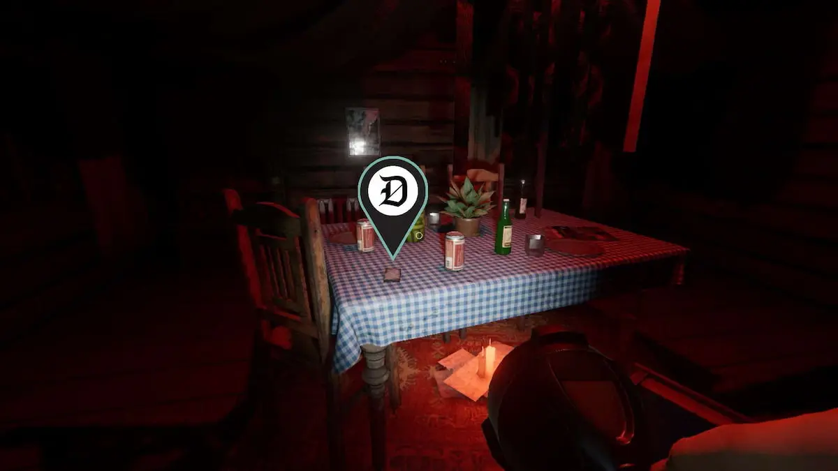 将带有蓝色和白色格子图案的餐桌放在房间中央。寻找位于最靠近前门的左角附近的一小副黑白塔罗牌。这张桌子上有很多杂乱的东西,所以一定要仔细扫描它,以确保你不会错过塔罗牌。