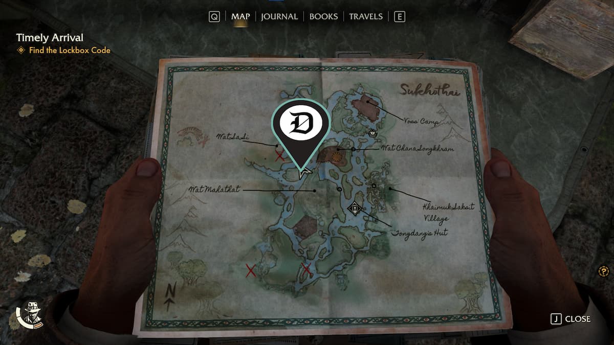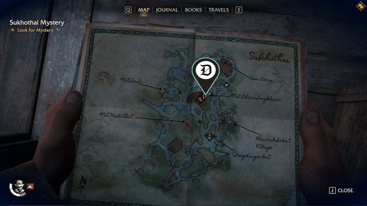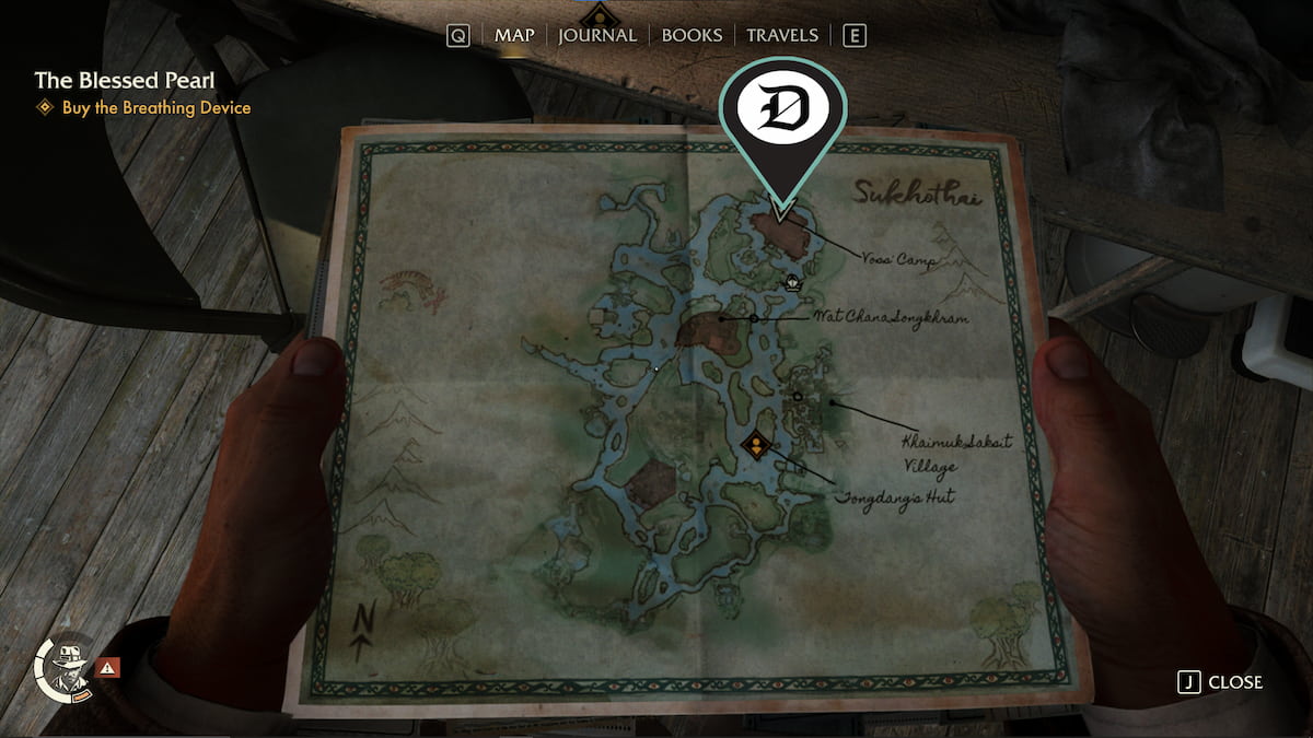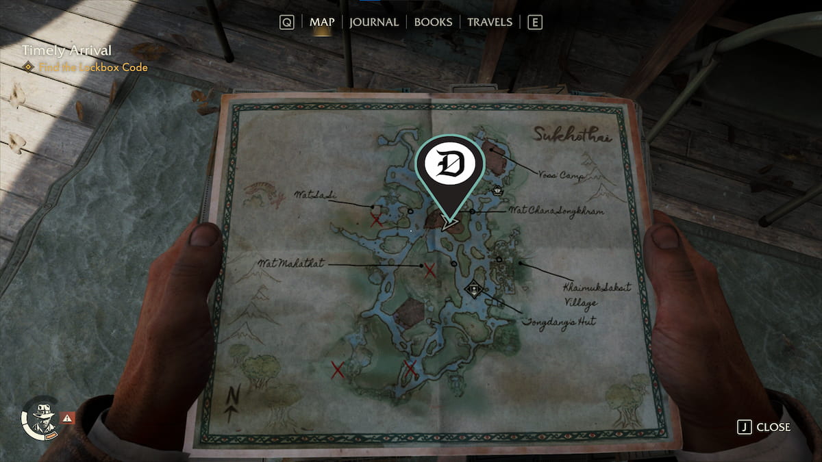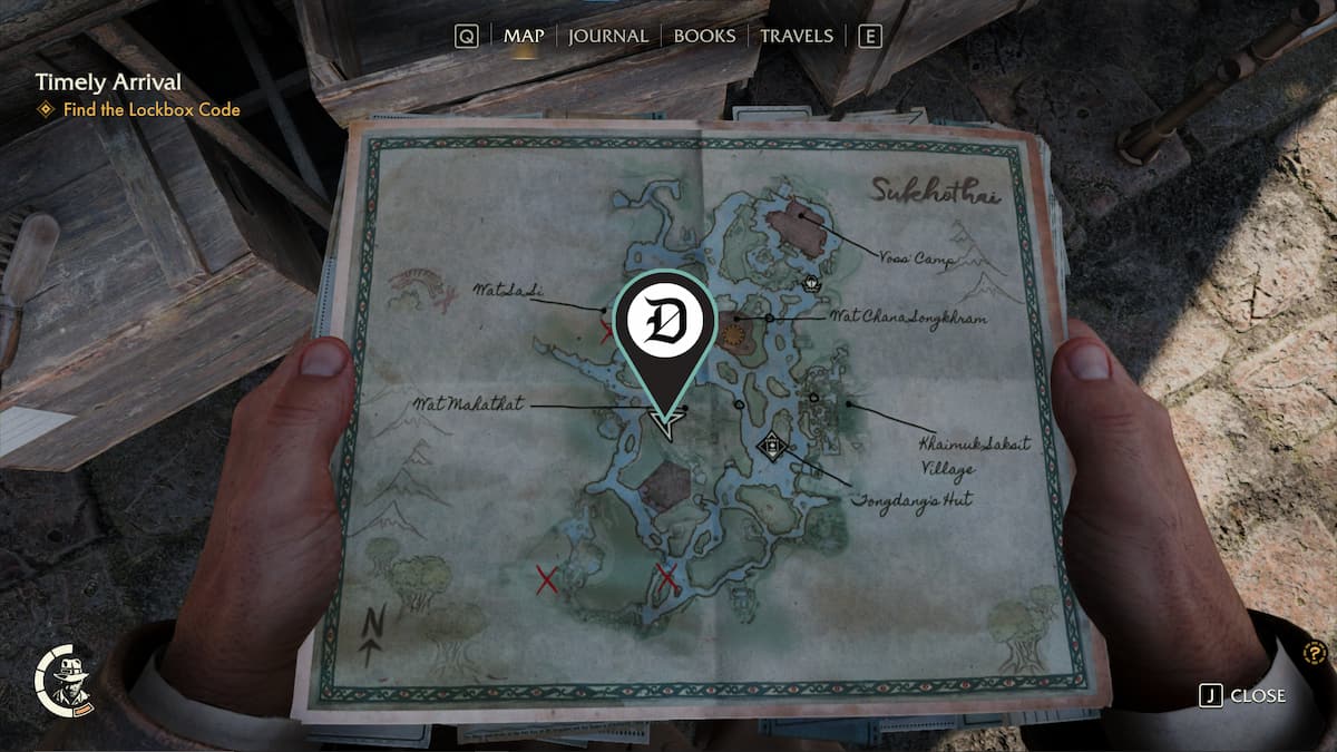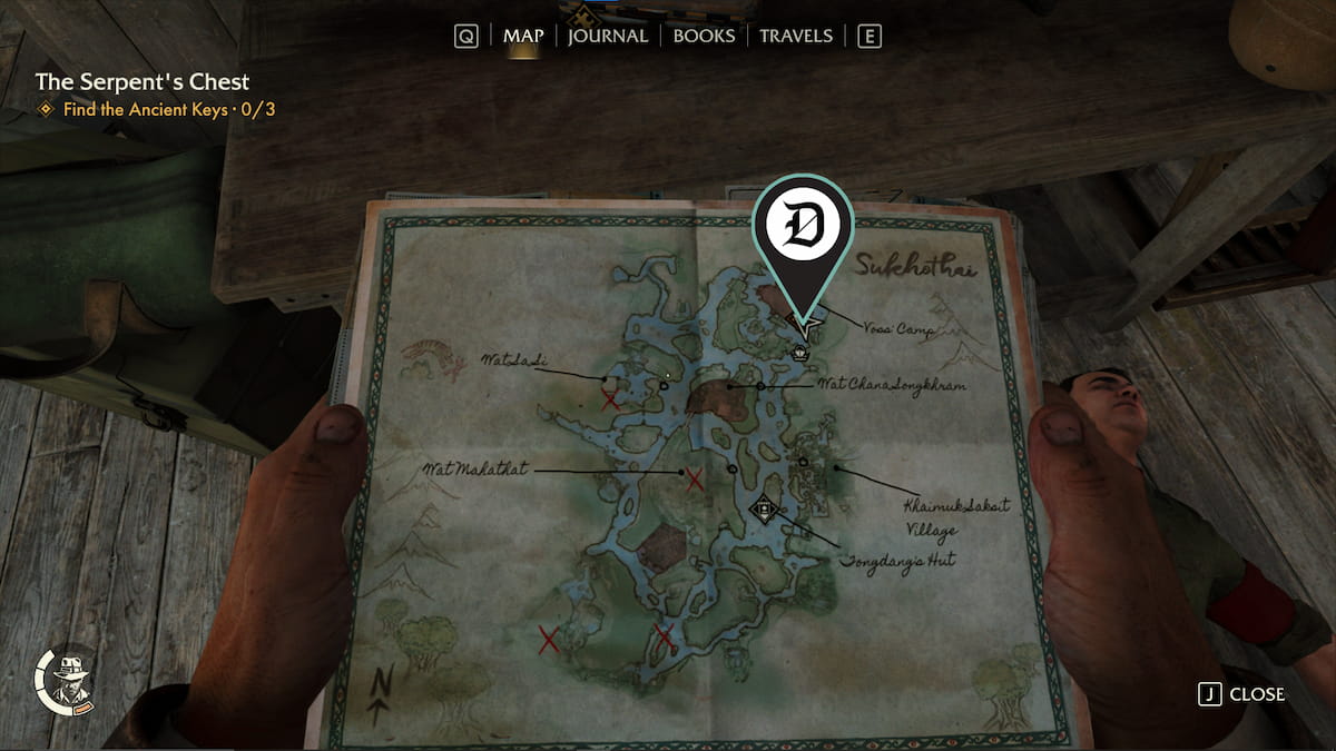| 韦泽 | 查纳颂堪寺 (Wat Chana Songkhram) 哨所以南有一个废弃的营地,里面有一个药瓶。你可以游过这个营地到达那里。 | ![]() |