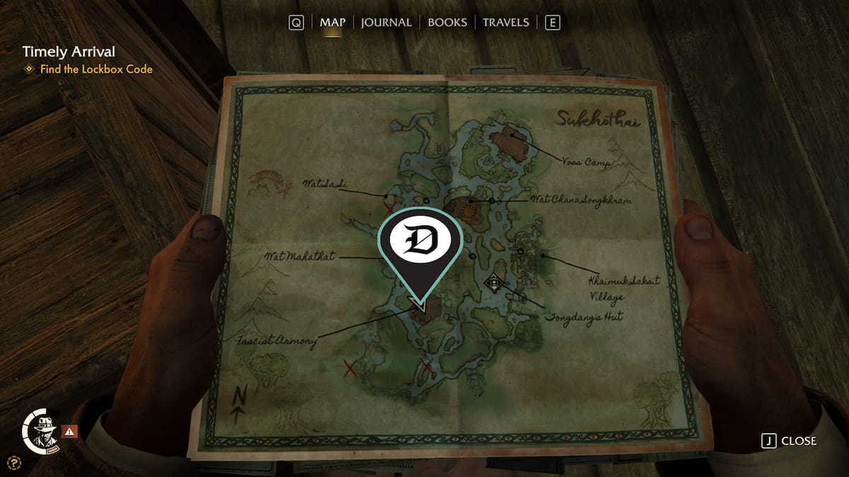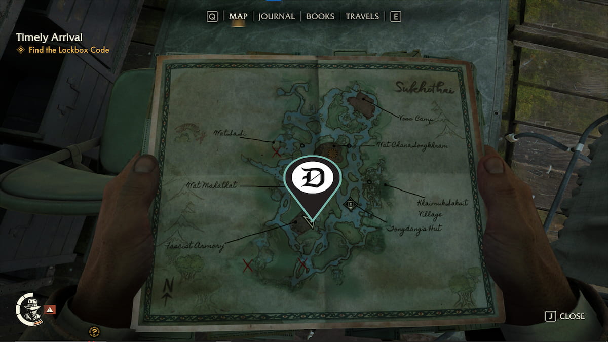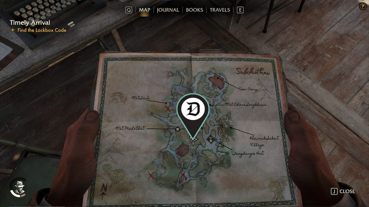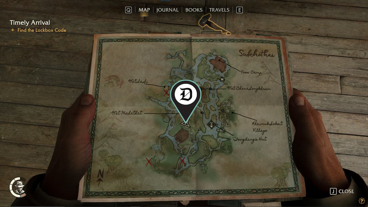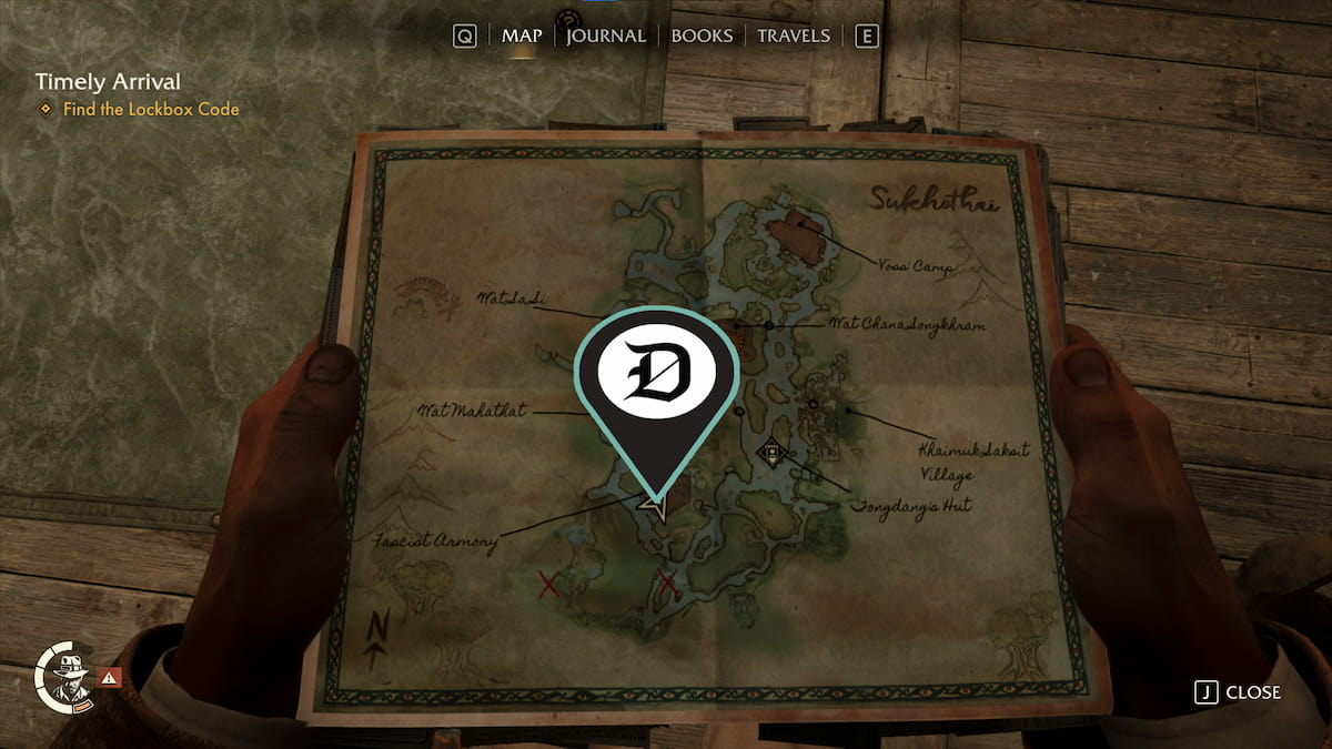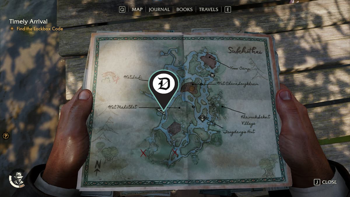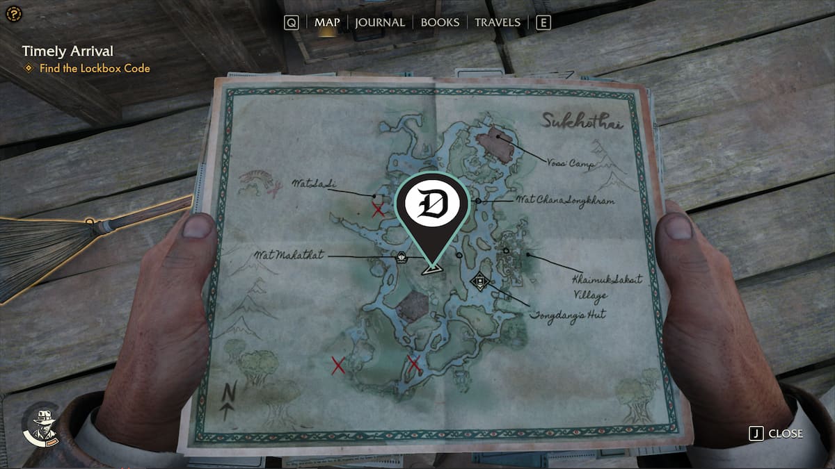 | 韦泽 | 查纳颂堪寺 (Wat Chana Songkhram) 哨所以南有一个废弃的营地,里面有一个药瓶。你可以游过这个营地到达那里。 | ![]() |