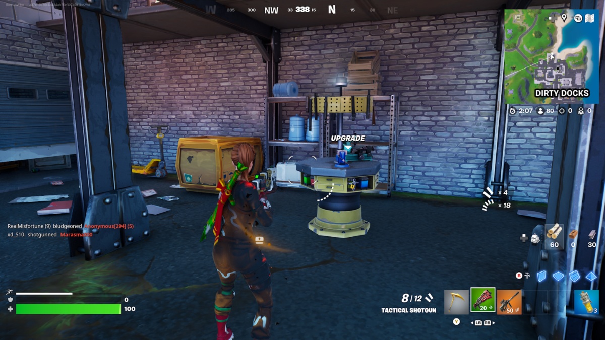 肮脏的码头在该地区北部的车库里有一个武器升级台。它就在设施的入口处。