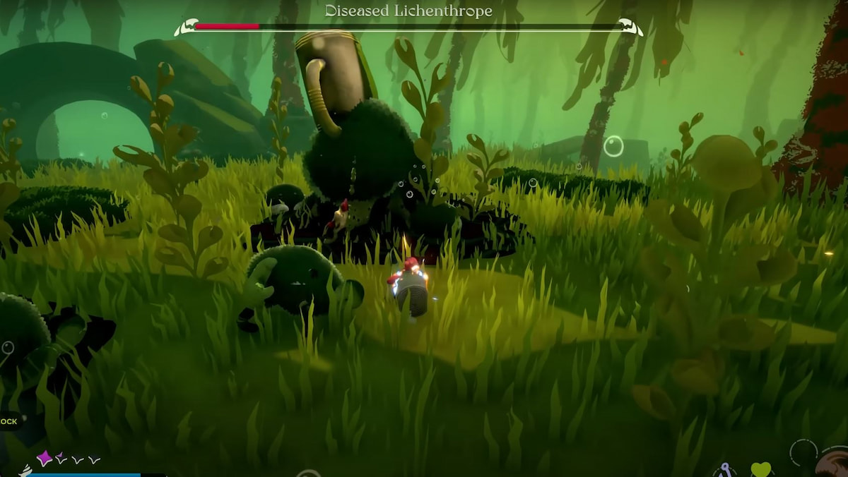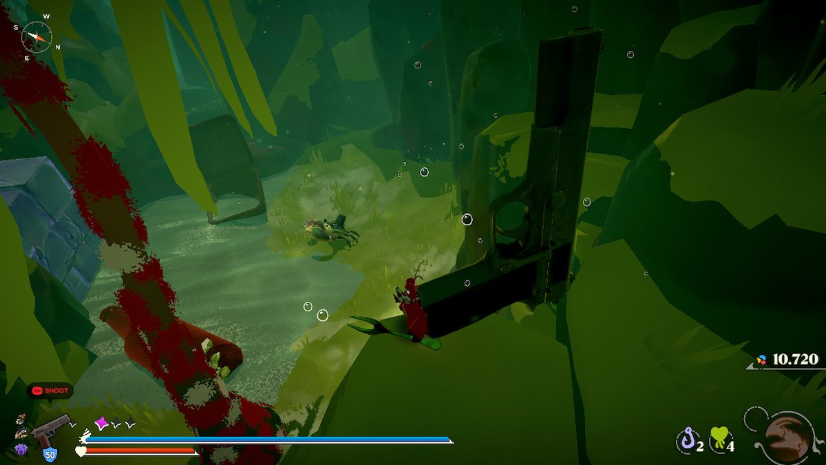 我对这款游戏的一个挑剔之处是需要更多的基础武器选项。是的,你有各种炮弹能力、适应攻击和技能,但你总是很轻,并且用叉子进行冲锋攻击。即使使用抓钩和技能树中的各种替代攻击,这也可能会在以后变得重复。改变这种情况的唯一方法是拿起锤子技能,你可以获得速度较慢的武器。我知道炮弹是为了取代它,但在魂类游戏中找到新武器并学习它的动作组合才是这些类型游戏的乐趣所在。另一个螃蟹的宝藏使你的选择多样化,但如果它有更复杂一点的基础武器种类,那就完美了。