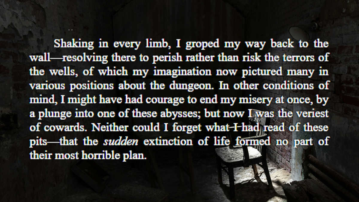 《坑与钟摆》首次出版于 1842 年,作为《礼物:1843 年圣诞节和新年礼物》的一部分,它确实令人不安,在你读完它很久之后,你仍会感到不安。坡的大部分作品都使用超自然元素来增添恐怖,而《深渊与钟摆》则不同,它侧重于人类的感官和非常真实的恐惧,向你灌输恐怖的感觉。