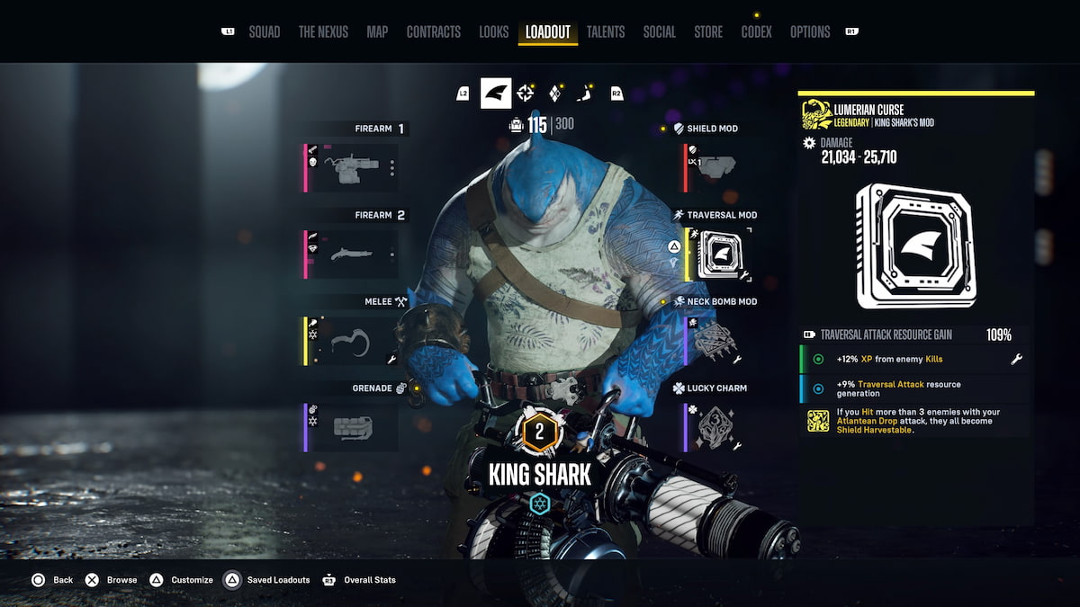 - 臭名昭著的 LexCorp Traversal Mod 或 Lumerian Curse:你可以加倍 LexCorp 伤害提升,但我最近一直在使用 Lumerian Curse 遍历模组,如果你用亚特兰蒂斯掉落击中超过 3 个敌人,该模组会让敌人获得护盾。这对于维持来说非常好。
