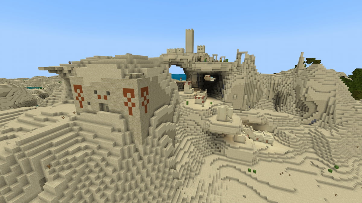 当你第一次到达这个沙漠村庄时,你不会注意到前面的山有什么异常。当你走到山的另一边时,你才发现这实际上是一座被沙子覆盖的沙漠神庙!幸运的是,它的入口和战利品室相对容易到达。你只需要提防寺庙内和沙漠村庄阴影中的敌对怪物。