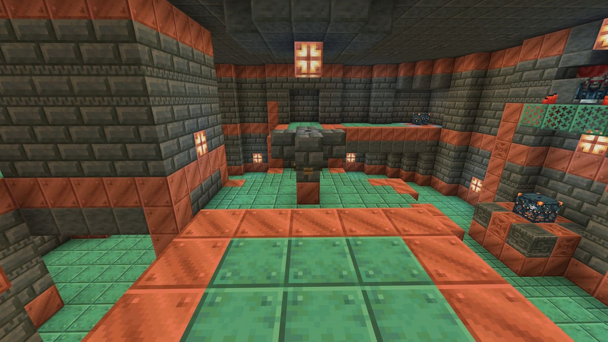 这座古城下方有一个巨大的熔岩池,为没有火把的玩家提供照明。城市中心的传送门里有一个装有金苹果的箱子。如果你抬头看天花板,你会发现一座庞大的矿井隐约出现在城市上空。我建议首先从矿井顶部开始。它有装有钻石的箱子,因此您可以在对抗城市中的众多敌人之前增强您的装备。随身携带盾牌,因为被敌对暴民从矿井上撞下来会在真正开始之前结束你的地下冒险。