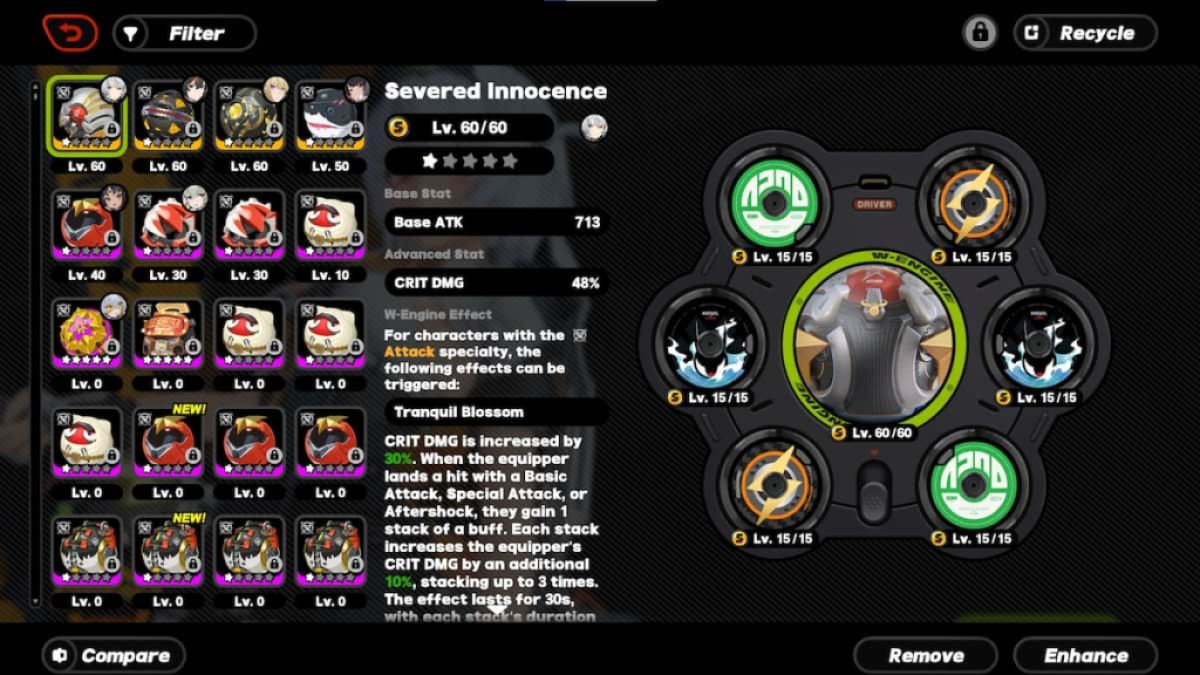 - 被割断的纯真:这是 Anby 的 BiS W-Engine,是专为她定制的。它为她提供了巨大的78% 暴击伤害当安比用基本、特殊和余震攻击攻击目标时,它会进一步增强。该增益效果可叠加三层,叠加三层后可额外增加 20% 的电击伤害。