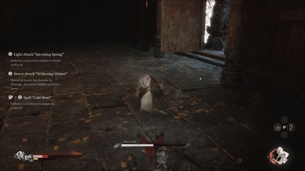 笔记:触发过场动画并揭示和尚作为“非虚空”老板战斗遭遇,必须进入这座神殿中的狐狸变身。通过选择库存中的“雪狐刷”即可轻松完成此操作。