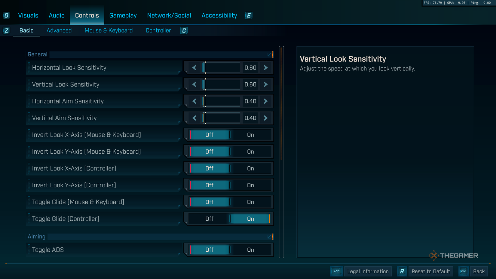 您需要检查基本选项卡中的两个设置:查看灵敏度和鼠标 ADS 捕捉到目标。《无主之地 4》中的基本鼠标灵敏度高得离谱,因此您需要在选项中将其调低。我们建议降低基础灵敏度并设置更低的 ADS 灵敏度值。这应该会让瞄准感觉更加顺畅。