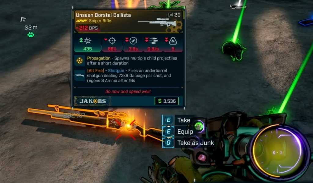 枪的稀有度越高,其拥有的许可零件就越多(绿色有一个,蓝色有两个,等等)。我体验到了这个系统的优点和缺点,因为我发现一些武器由于组合不在一起而完全无用。但最终,这就是游戏,不是吗?追逐随机战利品。这就是人们喜爱《无主之地》的原因。