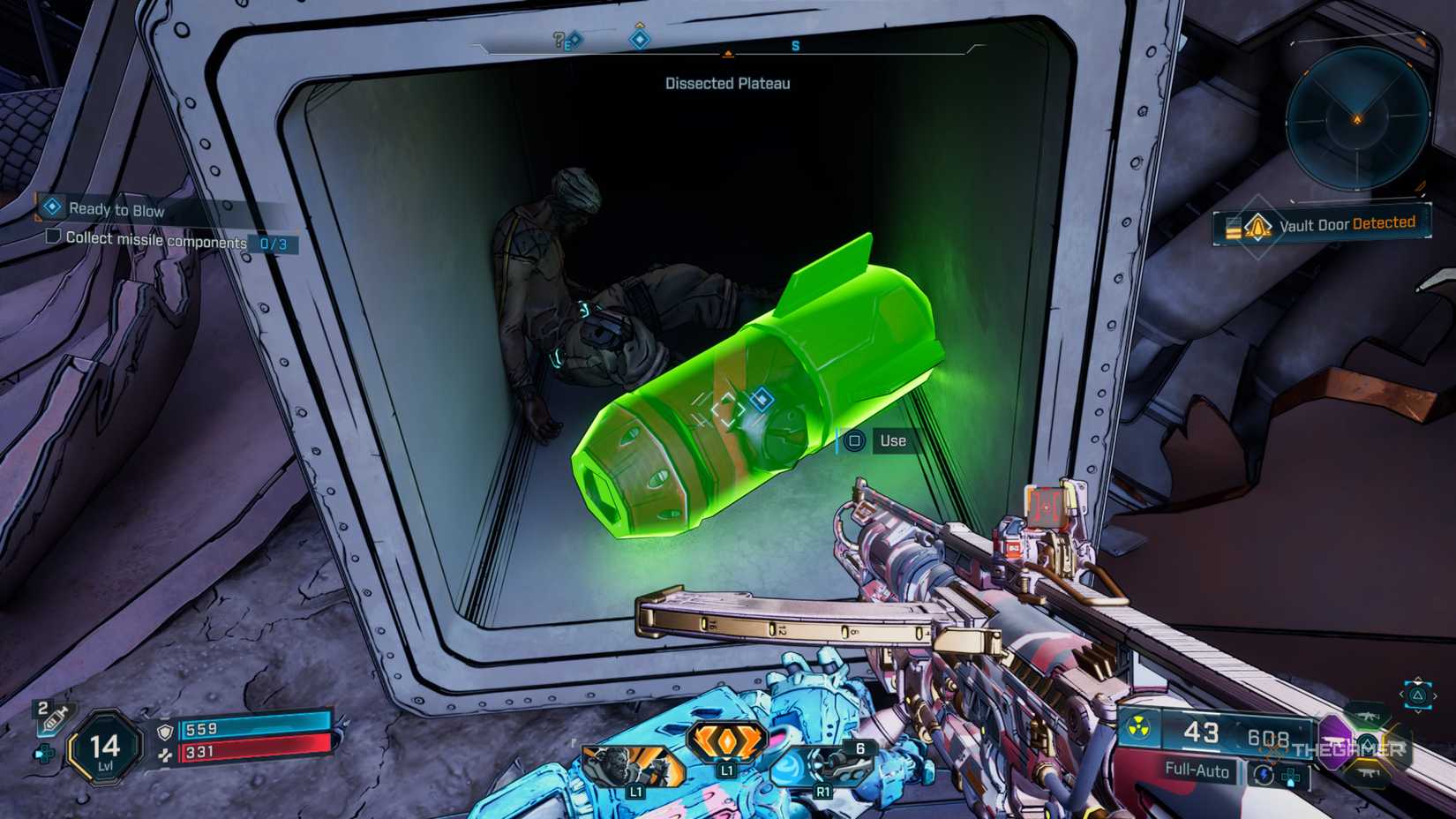 采取西南断木桥并使用你的抓住附近的抓斗点沿着墙壁找到一条通往你需要到达的废墟的捷径。使用您的抓斗把附近通风口的门撕下来,你会发现第一个导弹部件。