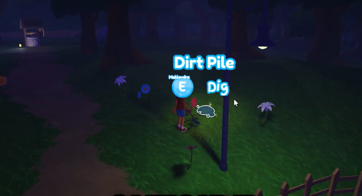 装备你的铲并离开市场。寻找发光的泥土堆,在市场以南的山区。挖出一个,然后返回市场,将泥土交给蠕虫。再次,你一次只能搬运一堆土。