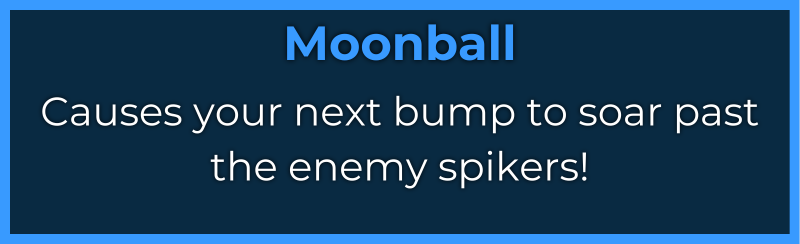 ![]() | • 超级冲刺大大提高你的移动速度。 • 这是一种非常通用的能力,非常适合接住流浪球以及在拦网或扣球之前重新定位。 | 常见的(62.5%) |