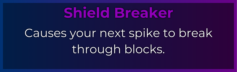 ![]() | • 破盾者可以让你的下一个尖刺穿过物块。 • 盾牌破坏者是主攻手的最佳能力,让您轻松得分。 | 秘密(0.01%) |