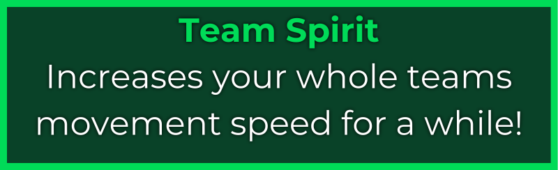 ![]() | • 团队精神名副其实,因为它提高了团队中所有玩家的移动速度。 • 如果您是一名团队合作者,喜欢坐在后面支持您的团队,请带上团队精神。 | 常见的(62.5%) |