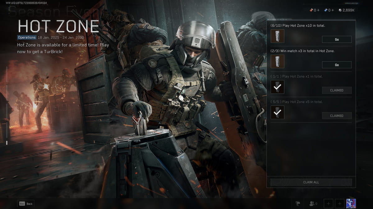 在撰写本文时,有玩 Hot Zone 没有专门的奖励。没有等级系统可以让你通过简单地玩来解锁装饰性奖励和助推器来获得积分,就像在核心战争和行动中一样。然而,有一个名为“Hot Zone”的限时活动,奖励参与并赢得比赛的 TurBricks。