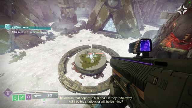 低头直到看到一束数据,周围环绕着三个牛头怪,你需要处理它们。与数据束交互,并在 Vex 破坏存档安全时保护您的 Ghost 免受几波 Vex 的攻击。