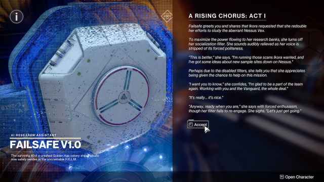 第 3 周 – 第 16 和 17 步:Failsafe 正在分析数据并接收《命运 2》中的任务简报