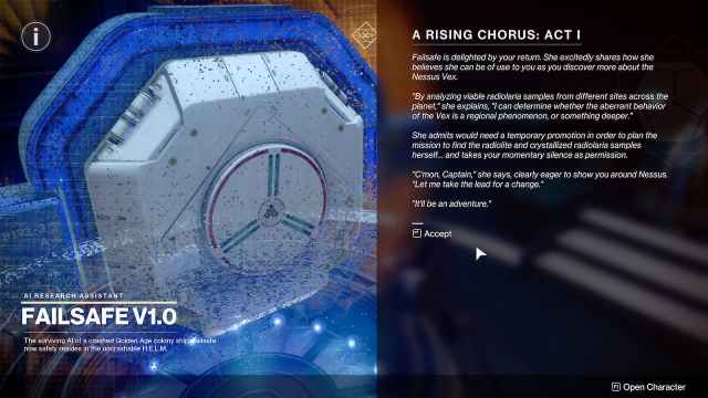 - 第 3 周 – 第 16 和 17 步:Failsafe 正在分析数据并接收《命运 2》中的任务简报