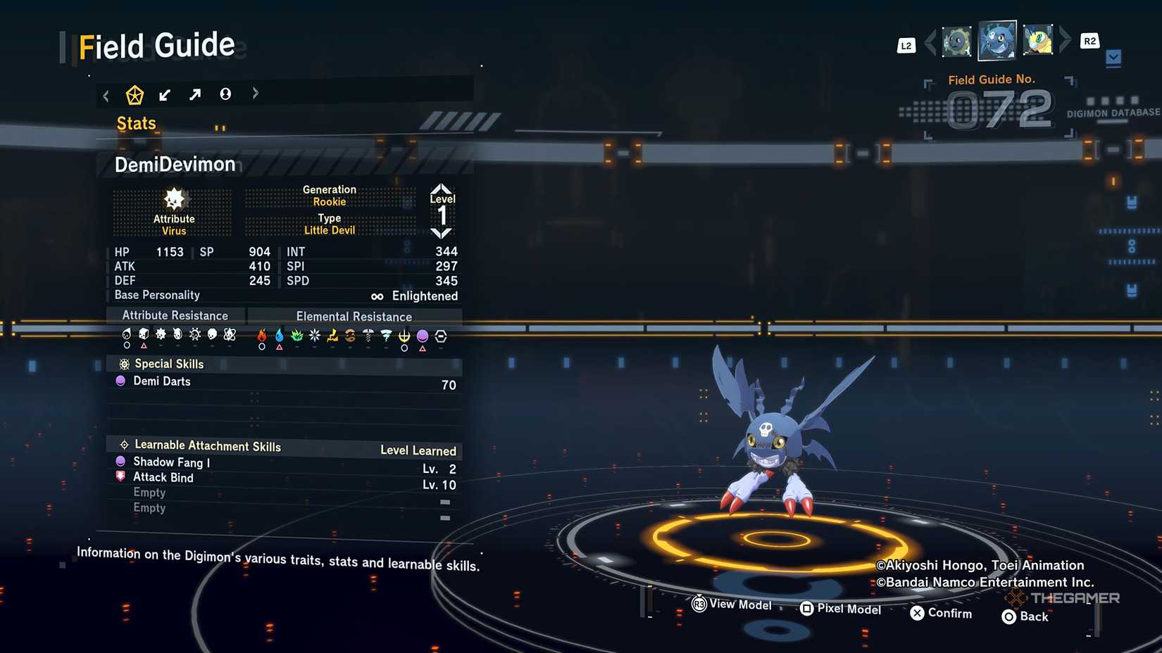 如果你没有选择 DemiDevimon 作为你的首发,你可以稍后通过DigiVolving 将成为帕杜的炖菜,然后进入半恶魔兽。
