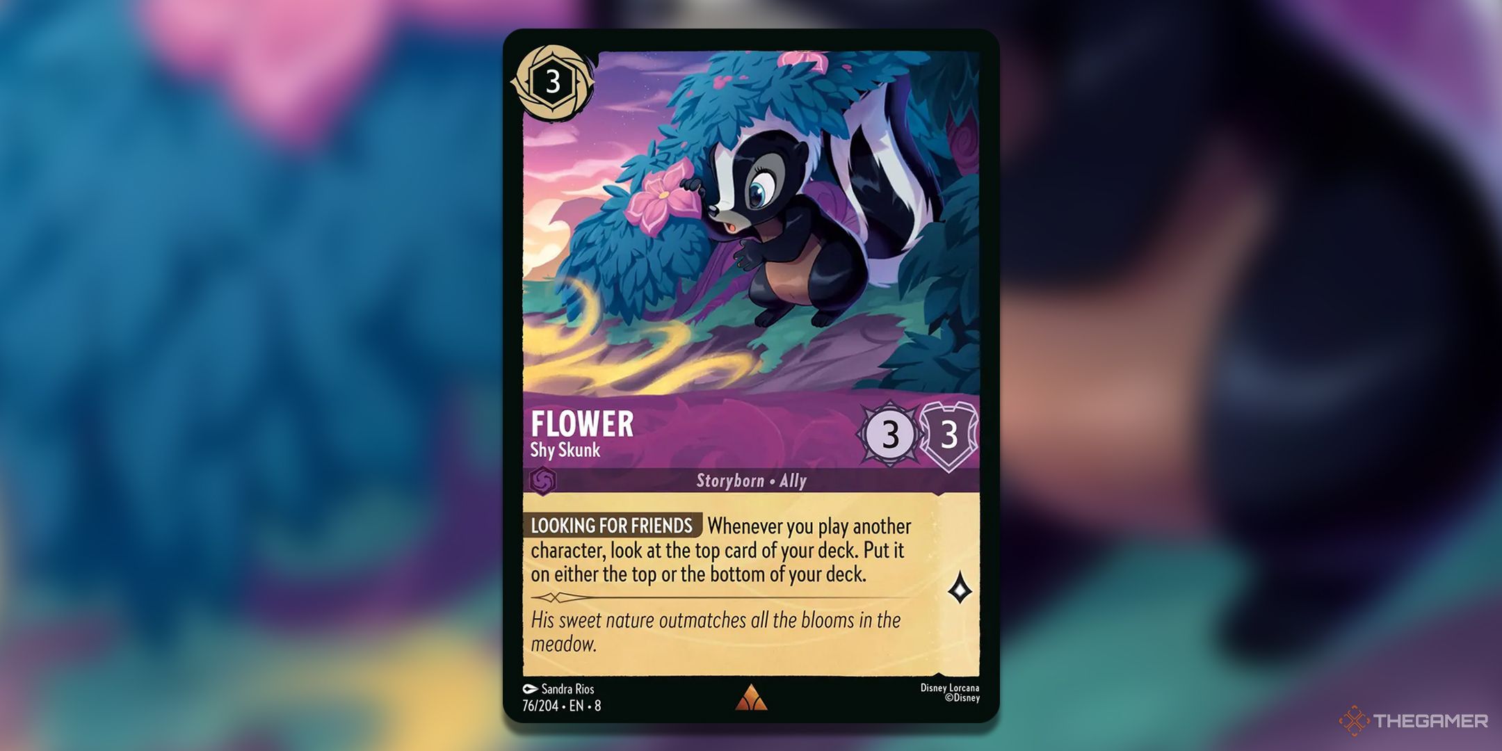 在一副充满歌声的牌组中,最好的牌是一张与歌曲无关的三墨稀有牌,这感觉很奇怪。相反,花是几乎所有紫水晶牌组中的必备品,因为它能够以闪电般的速度过滤您的牌组。每当您扮演角色时,您都可以查看牌组顶部的牌,并将其保留在顶部或放在底部(在其他游戏中称为占卜)。