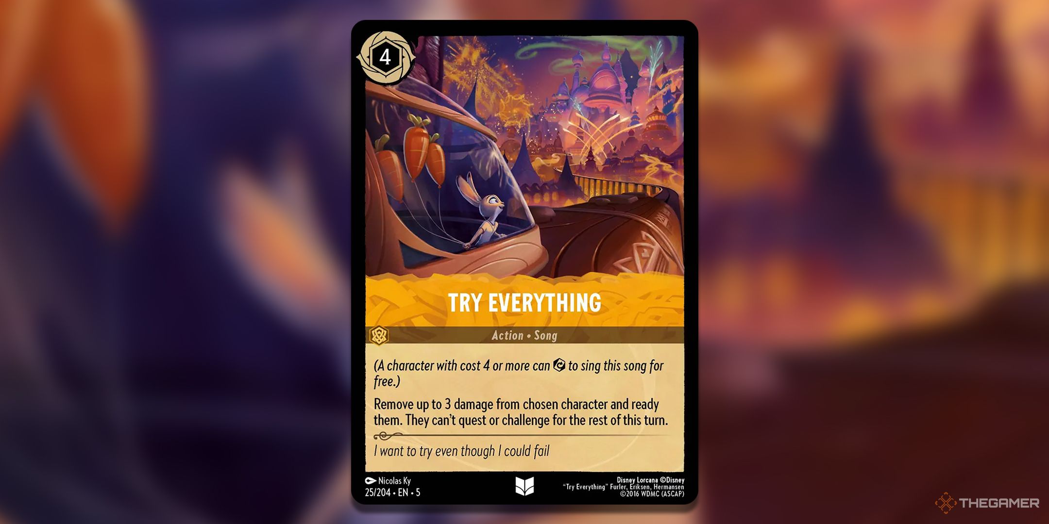 《尝试一切》是这套牌中的几首歌曲之一,它是治愈角色伤害的一种便捷方法。它还有助于他们做好准备,防止对手在挑战中发起任何反击。即使它在准备好后无法探索或挑战自己,它也可以做这套牌最喜欢的一件事:唱歌。