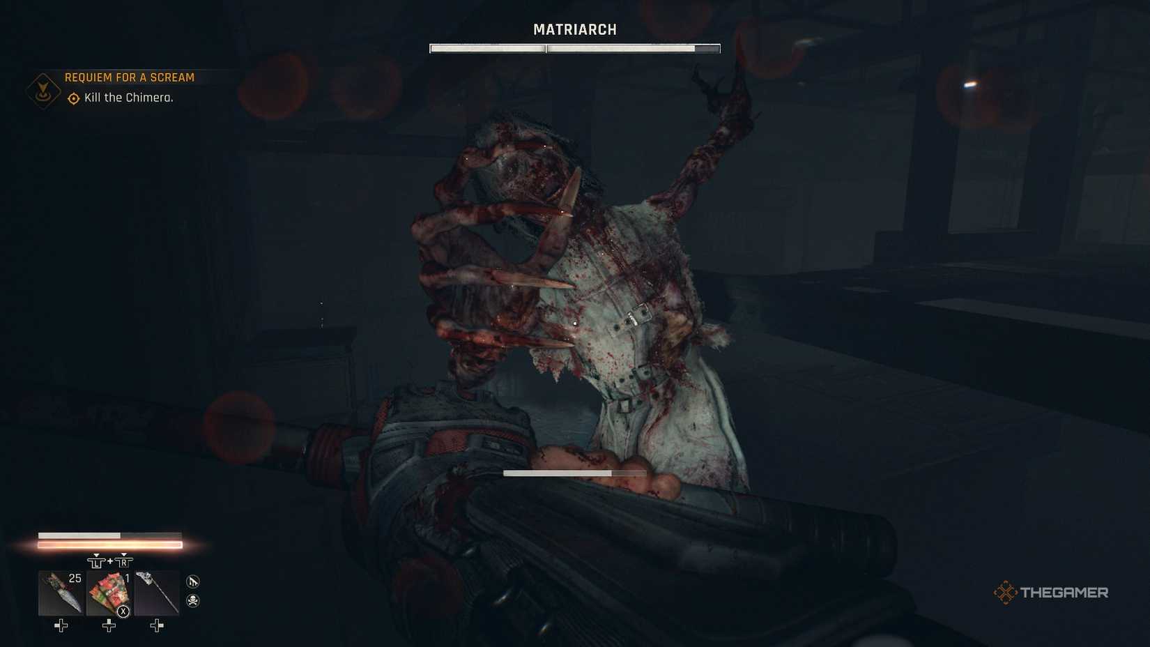 使用需要弹药的武器可以帮助你在攻击奇美拉时保持距离,但弹药稀缺,所以通过访问车队并击败和抢劫持枪的人来储备弹药。