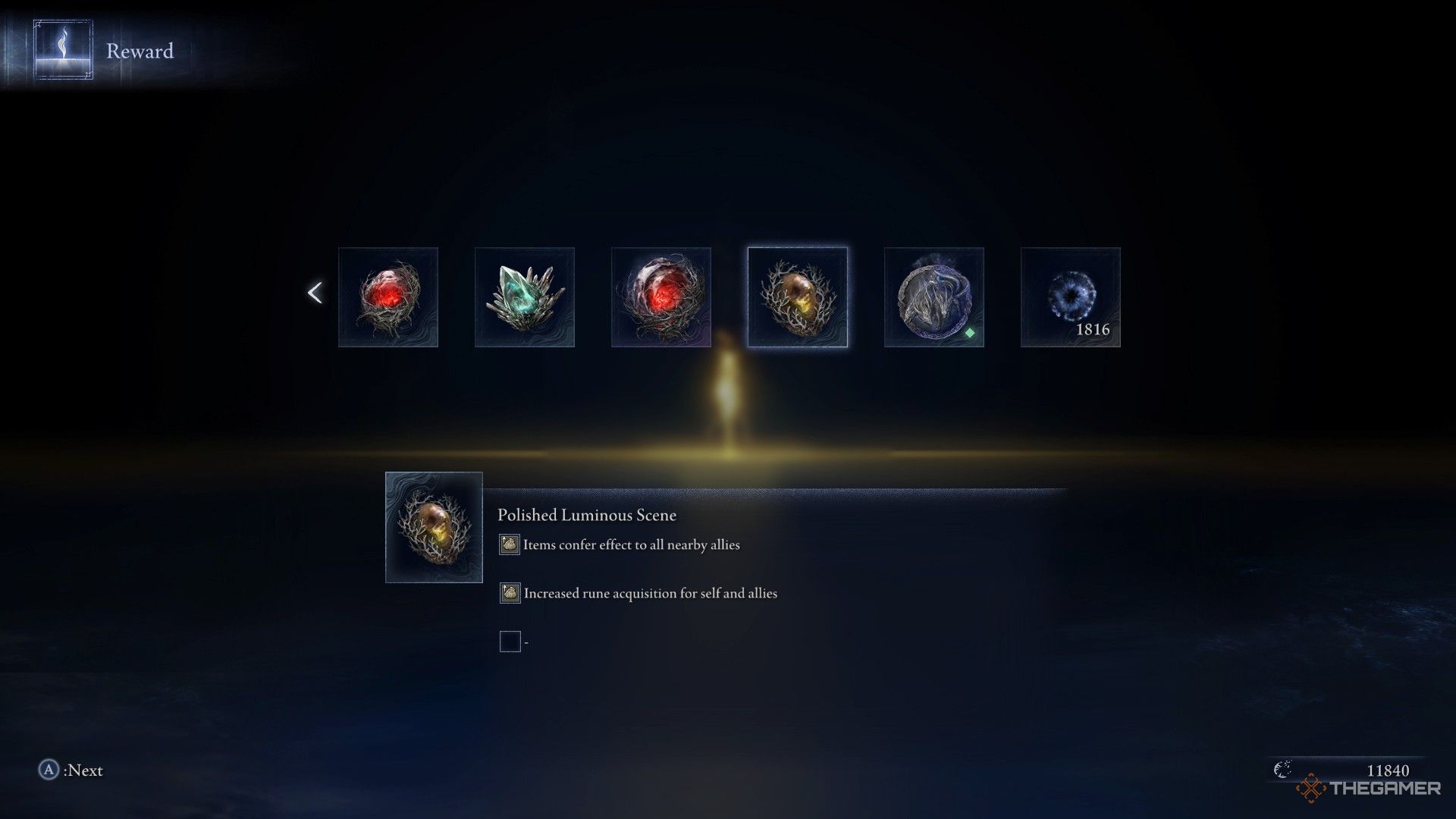 另一方面,一旦你完成狩猎,无论是成功杀死你的夜领主还是死亡,都会给你一些圣物。它们将是随机生成的,但有一些重要因素影响生成: