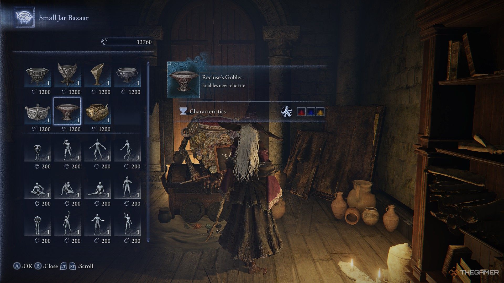 虽然从一开始就没有提供,但随着您的探险进一步进展,小罐子集市将提供更多物品。对于圣杯来说,击败 Tricephalos 后,小罐子会出售圣杯.
