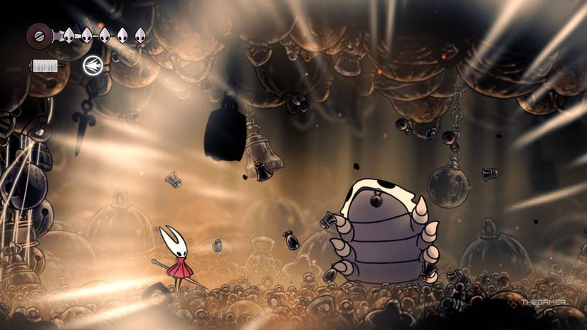 正如我之前所说,我很喜欢可爱的设计。其中最可爱的之一就是贝尔兽。尽早击败它后,它将成为你在 Pharloom 周围快速旅行的门票。虽然是虫子,但它的行为却很像狗,所以我不得不问,为什么我们不能抚摸铃兽呢?