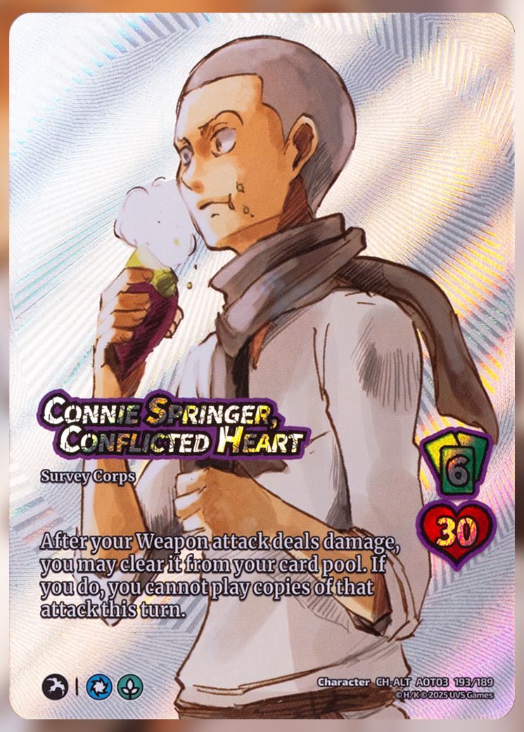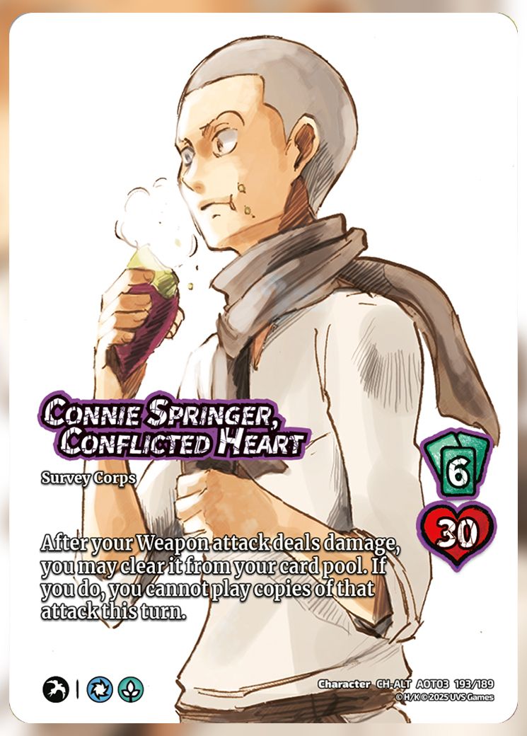 它们也是构建的绝佳卡牌。安妮·莱昂哈特 (Annie Leonhart) 让您可以使用备份作为基础来提升速度,然后变身为女性泰坦,并将所有这些备份转化为额外的 +2 攻击速度,从而实现惊人的快速和意想不到的攻击。与此同时,康妮让你可以通过将武器卡弹回到你的手上来保留它们,而不是在回合结束时丢弃它们,从而减少你在此过程中的渐进难度。