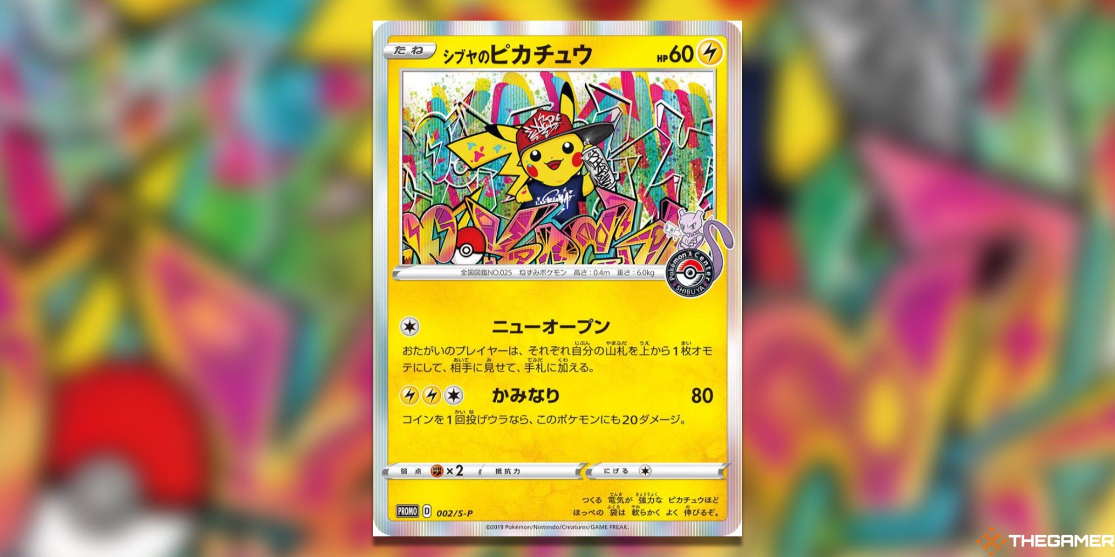 涩谷的皮卡丘是一张罕见的、地点独有的促销卡,为庆祝涩谷神奇宝贝中心开业而分发,使其成为此列表中最难找到的促销卡之一。