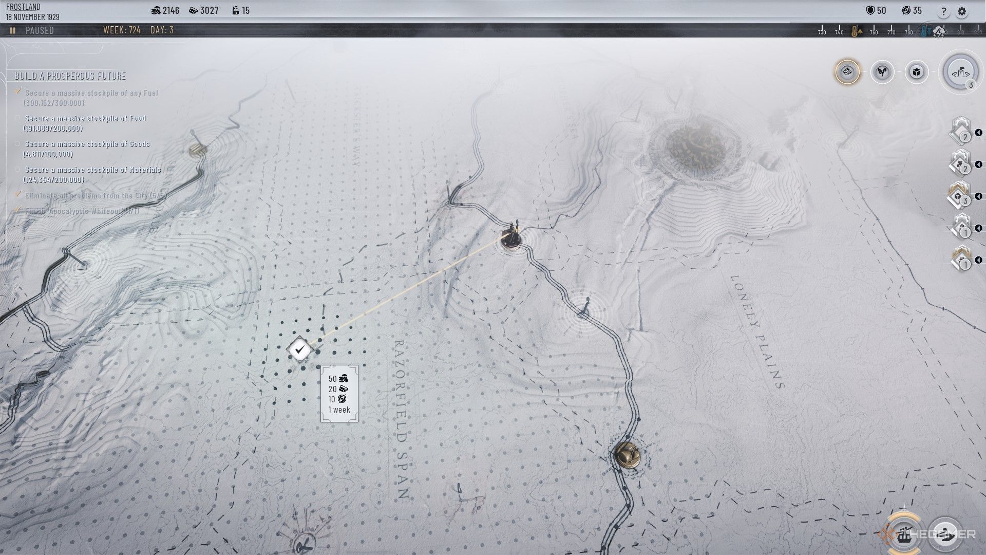 在游戏早期拥有任何后勤基地是一个好主意,因为弗罗斯特兰德团队(或侦察兵)对于你探索外部世界至关重要,你拥有的侦察兵越多,你探索的速度就越快,你能够带回家的资源就越多。