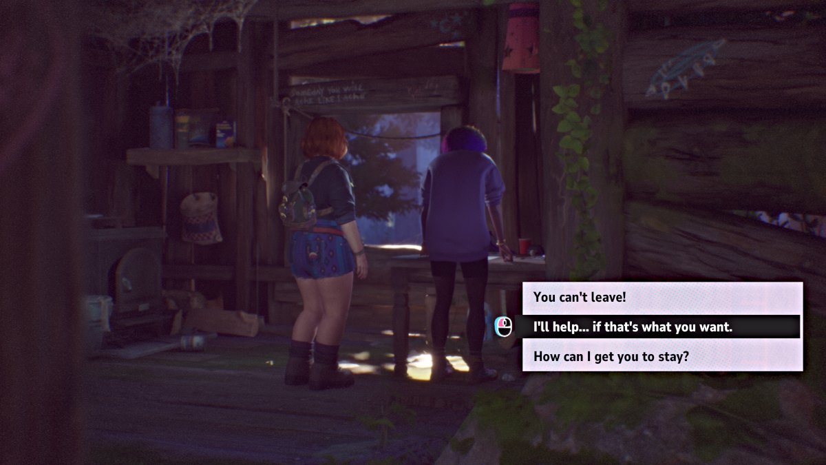 最后,当有机会时,向奥特姆展示他们在小屋里冒险的视频。当 Autumn 试图离开小屋时,走过去拥抱她。如果您成功完成了上述步骤,秋天就会留下来,并且成就将会解锁。