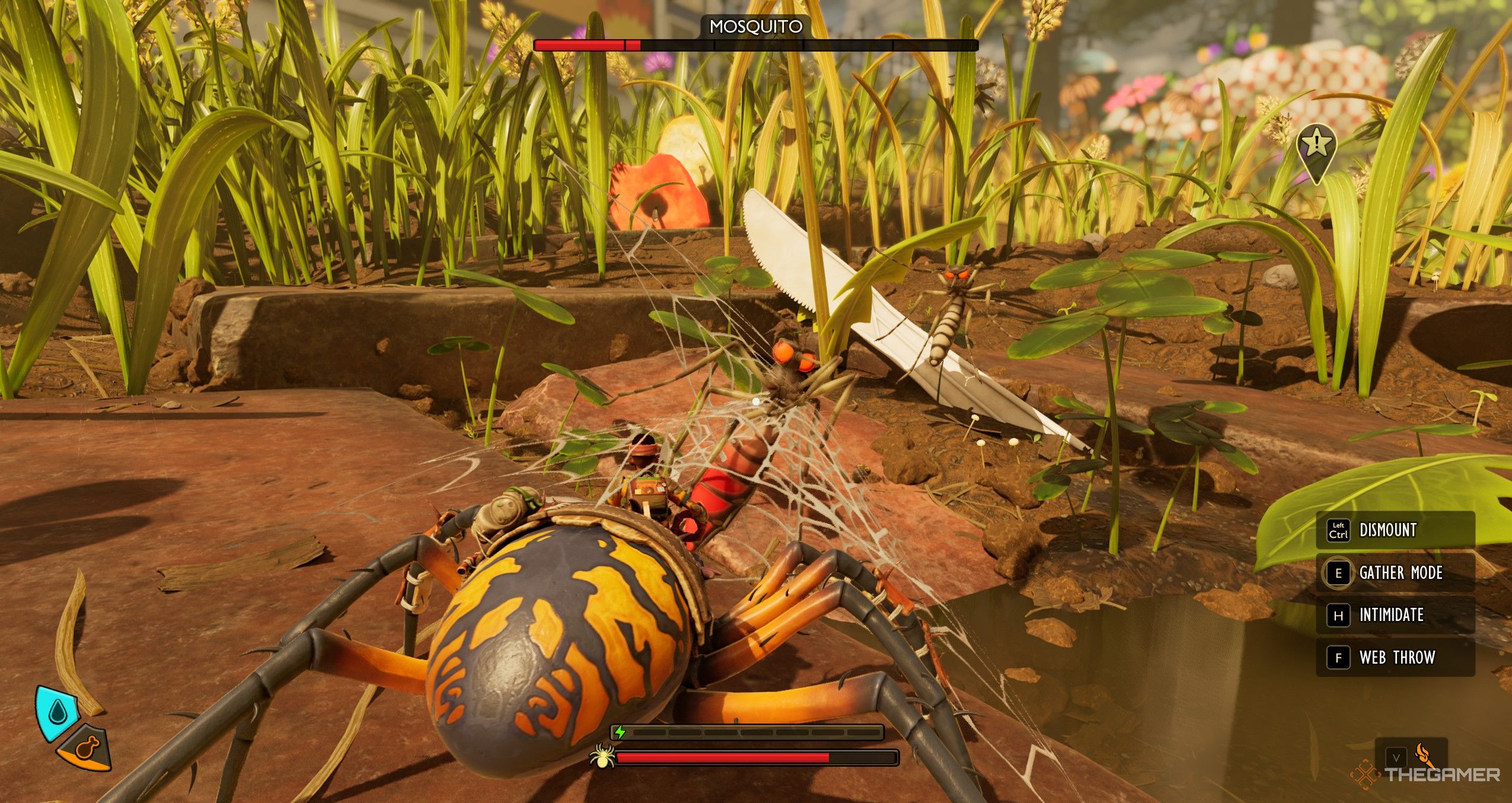 除了在战斗中更加用力地击打之外,Orb Weaver 还可以冲向敌人并对其造成伤害,彻底杀死象鼻虫和螨虫等较小的昆虫。这不足以对臭虫或其他蜘蛛等较大的敌人造成太大伤害,但冲过一群螨虫是摆脱烦恼的好方法。
