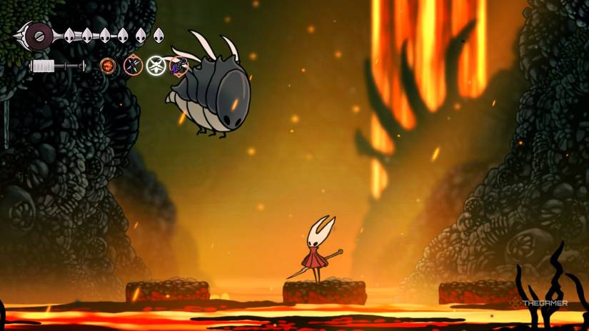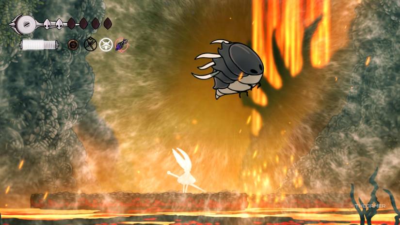 所以空洞骑士:丝之歌野蛮兽蝇成为银河恶魔城历史上最令人讨厌的 Boss 之一,他们心想:“不,我们可以让事情变得更糟。”因此,他们将野蛮兽蝇的复赛放在一个带有临时平台的熔岩坑上。对于那些愿意再次承受痛苦的人来说,至少未来还有一块面具碎片。