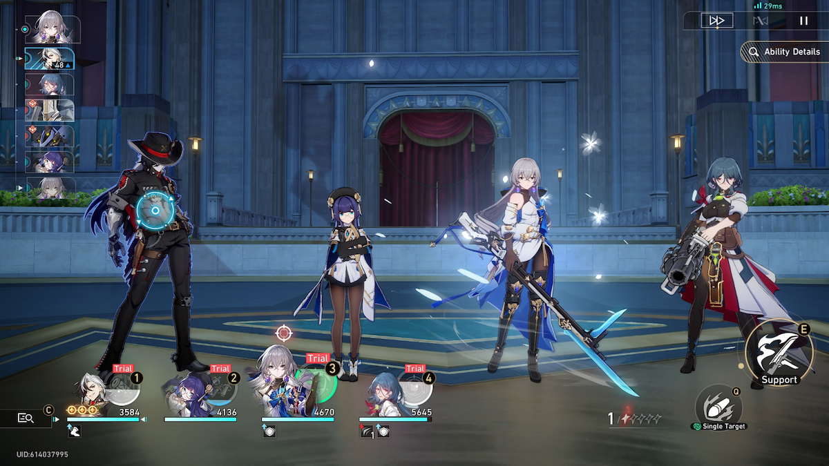 由于 Harmony MC 和 Pela(4 星)的加入,这个团队对免费游戏更加友好。和谐 MC 在以破坏效果为中心的团队中非常有效,因为其超级破坏效果允许队友即使在敌人的韧性条耗尽后也能造成额外的破坏伤害。虽然佩拉无法贡献“破坏效果”特定增益,但她的 DEF 粉碎套件将帮助布特希尔造成额外伤害。和之前的队伍一样,加拉格尔的突破效果套件与布希尔的协同效果非常好,但如果你没有他并且只需要额外的生存能力,你可以将他换成像娜塔莎或山猫这样的治疗师或像3月7日或东陵。
