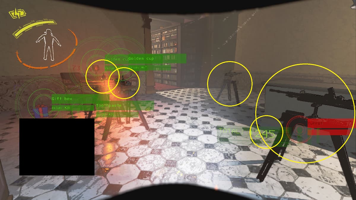 四个炮塔和物品总共价值245。如果我没有截图,你不会相信。这是一张图片中的技巧。在这里的风险和回报。我勉强拍下了这张屏幕截图,转身并活着离开了这里。其他房间没有什么不同,在我看来,这张地图是为了使用 mods 来玩的,允许你在大厅里有大约 20 名玩家。