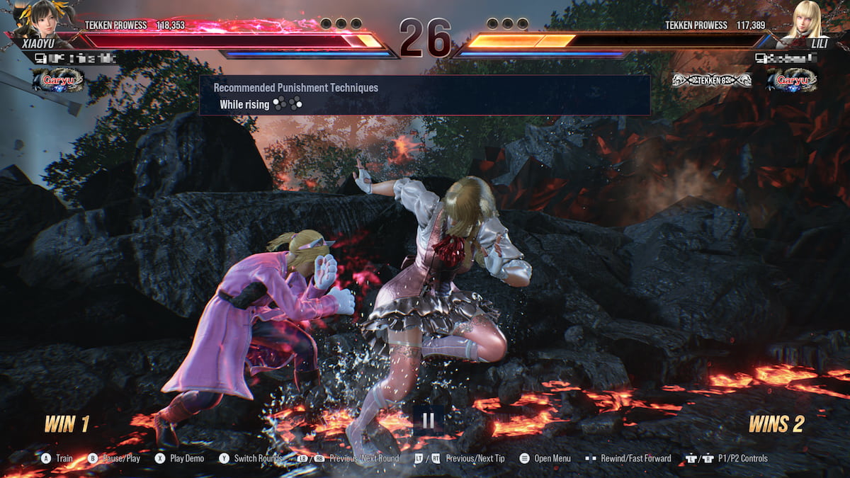 这些建议的提升之处在于您可以立即应用它们。除了推荐的组合示例似乎带我去了一个类似于组合挑战中的训练室之外,您可以选择“训练”或在重播中控制您的战斗机并尝试推荐。根据您玩《铁拳 8》的平台,可以通过按 Cross/A 按钮来完成此操作。